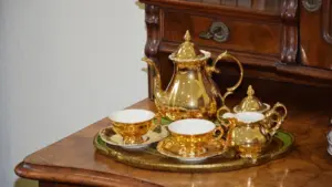 Im weiteren Verlauf der Vernissage erklärte Marianne Gorissen bei einem Rundgang Wissenswertes zu den Exponaten. So hat man in der Vitrine in der Eingangshalle die Welt versammelt, finden sich dort doch Kaffee-, Tee- und Mokkaservices aus Asien, England und auch Deutschland. In der vielfältigen Ausstellung, die Geschirr aus zwei Jahrhunderten präsentiert, sind auch zahlreiche sogenannte Sammeltassen oder Geschirr, das es einst nicht zu kaufen gab, sondern das man nur durch Rabattmarken bekommen konnte, zu bestaunen. Zudem werden Kinder- beziehungsweise Puppenservices ausgestellt.